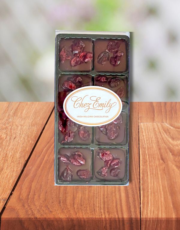 Handcrafted Cranberry Dark Chocolate Squares (70.4%) Discover the harmony of rich, bitter chocolate and vibrant fruit with our Cranberry Dark Chocolate Squares. This elegant addition to our chocolate square collection...